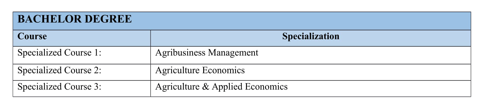 SASORD offers a bachelors degree in Agricultural Business .This program will run under the affiliation of foreign university.